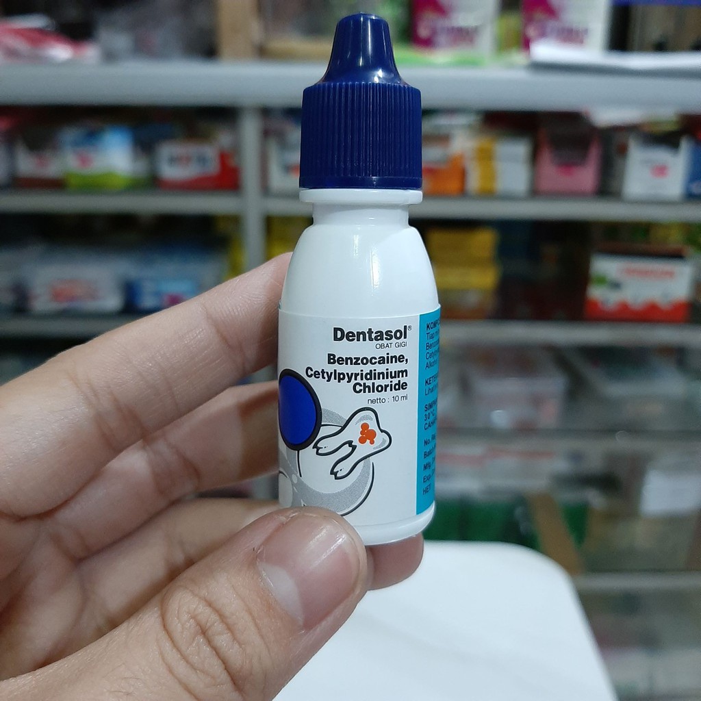 Dentasol mengandung benzocain, chloride, campora, phenolum, mentholum, dan cetylpryridium. Untuk menggunakannya, oleskan obat pada kapas setiap 4 jam pada tempat yang sakit. Obat ini akan memberikan efek samping rasa menyengat yang bikin kamu nggak nyaman.