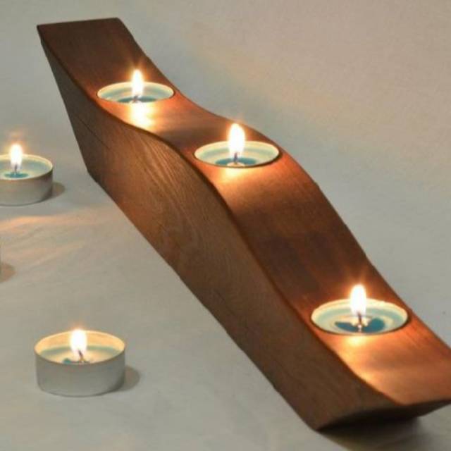 Jika sebelumnya ada tempat lilin kayu minimalis, ya, ada yang beda dari satu ini! Tempat lilin unik ini terbuat dari kayu jati dan terdapat 3 lubang sekaligus.